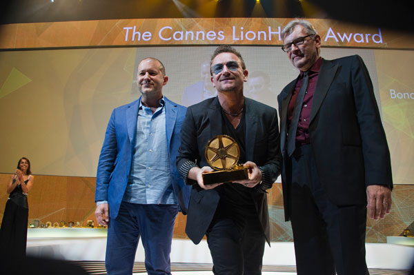 At Cannes Lions 2014, Bono, engaged lead singer of Irish band U2 and “revolutionary” militant with (RED) was invited and honored with first Lionheart award.