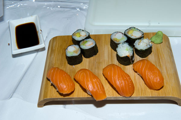A glass in hand, the guests were able to taste the generous cheese plates, delicious sushi rolled on the spot, Risotto with Parmesan, casseroles of scramble eggs with fresh truffle. For dessert, a Valrhona chocolate fountain for dipping exotic fruits, marshmallows, meringues, macaroons and sublime pastries fulfilled the taste buds of gourmets at this festive evening.