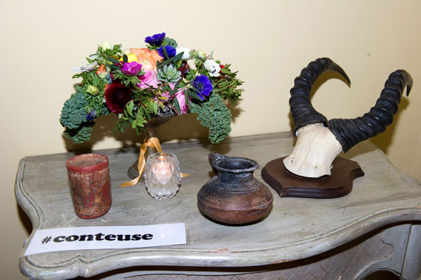 Upon arrival in this exceptional mansion – that belonged in ancient times to the famous Grimaldi family (its wine was served at the wedding of Albert of Monaco) – the guests were welcomed into a warm and mysterious atmosphere, emanating magic. In every corner of the house, ribbon of flowers, candles, balloons and sculptures signed Fabienne Ferrer, the artist who is exhibiting at the Château des Demoiselles until June 10, 2016.