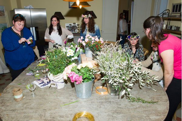 Everyone could then learn about the making of a crown of fresh flowers and see with wonder their hands create a crown they would wear during the evening, guided by the good advice of the floral decoration creator Mary Martylle.