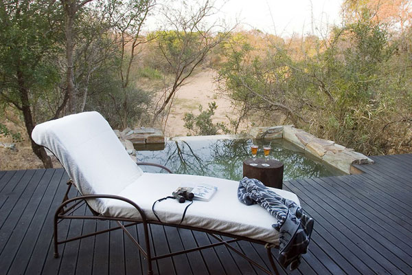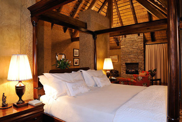Camp Jabulani Relais & Châteaux features six comfortable and elegant suites set in private pavilions. Nestled in nature, their colonial-style architecture overlooks the bed of a dried up river. The air-conditioned suites are insulated and each has sliding wooden doors, a fireplace in the living room, a massive stone bathtub, a terrace, a private pool and a glazed outdoor shower.