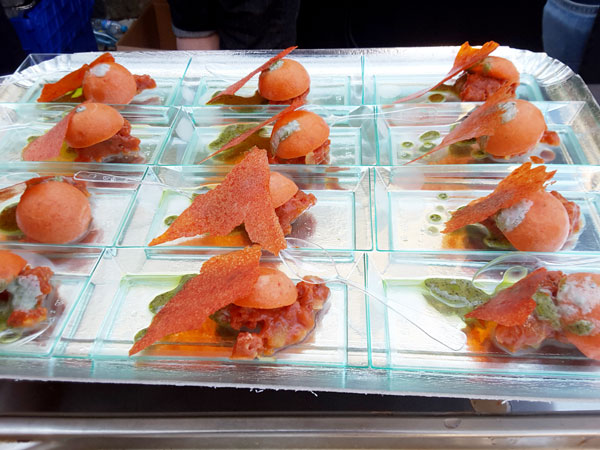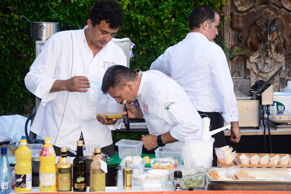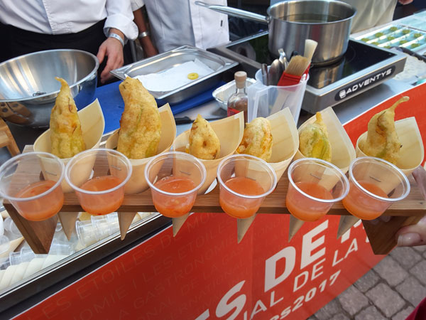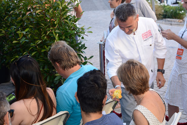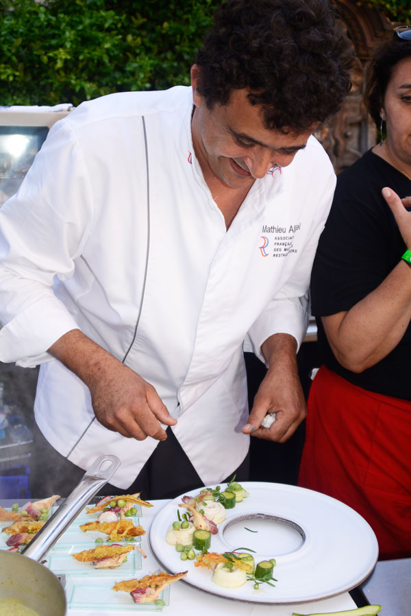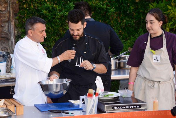 The Maîtres Restaurateurs association brought together at Les Étoiles de Mougins 2017 four chefs Maîtres Restaurateurs: Franck Cicognola (Mon Petit Resto in Mouans-Sartoux), Jérôme Clavel (Le 44 in Antibes), Guillaume Arragon (Le Bistrot Gourmand in Cannes) and Mathieu Allinei (Le Bistrot du Port in Golf-Juan). The delicacies prepared by the chefs were distributed to the public for tasting by members of the Ratatouillettes.
