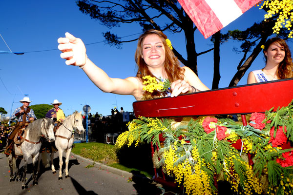 The Fete du Mimosa in Mandelieu celebrates since 20 years the scented magic of the flower symbol of the Sun with stunning traditional corso of Mimosa facing the Mediterranean Sea.