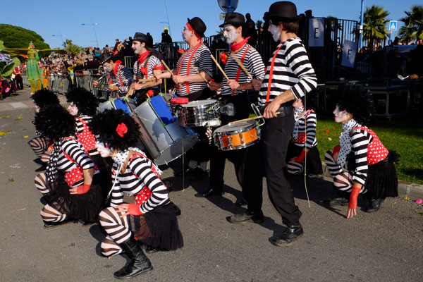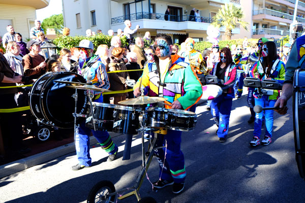 In a nod to the Youth in Fanfare, a theme evoking vitality and music, 8 floats all dressed in gold, accompanied by troops of dancers, musicians and street performers, paraded by the sea in Mandelieu-La Napoule. Girls in festive costumes distributed some bunches of mimosa to a delighted audience.