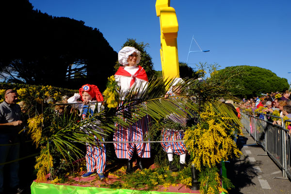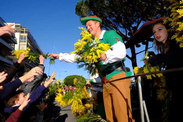 La Fete du Mimosa celebrates a local culture and economy that made the prosperity of the country. Its success is increasing year by year and now the event attracts many enthusiastic spectators coming to admire the floats and catch sprigs of mimosa distributed by bunches by young gorgeous young girls perched on the floats.
