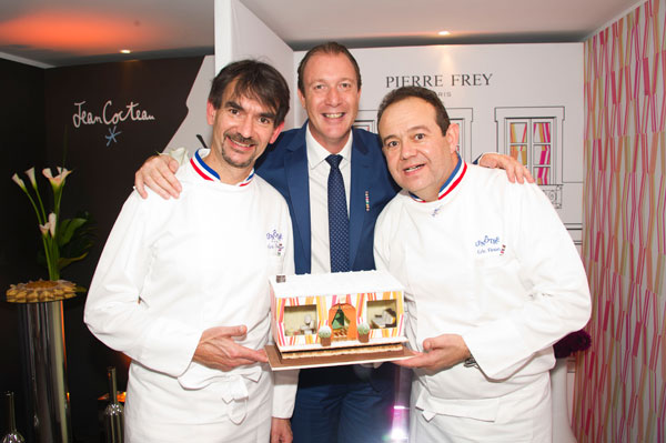 Surrounded by Guy Krenzer, Lenotre’s chief executive and creative director and Eric Finon, chef Lenotre Côte d’Azur, both Meilleur Ouvrier de France, Laurent Le Fur, CEO of Lenotre, unveiled at Cannes the Bûche de Noël (Yule Log) as well as the Galette des Rois with its collection of beans. The mayor of Cannes, David Lisnard, attended the national première presentation of the prestigious desserts combining Art and gastronomy.