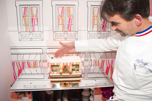 The Bûche de Noêl Lenotre for Christmas 2014, designed by Patrick Frey and his eldest son Pierre and realized by Guy Krenzer, Lenotre’s creative director is inspired by the façade of the historic boutique Pierre Frey located at 47 rue des Petits-Champs in Paris. The delicate and delicious “puppet house” weights 1,3 kg of confectionery and cake.