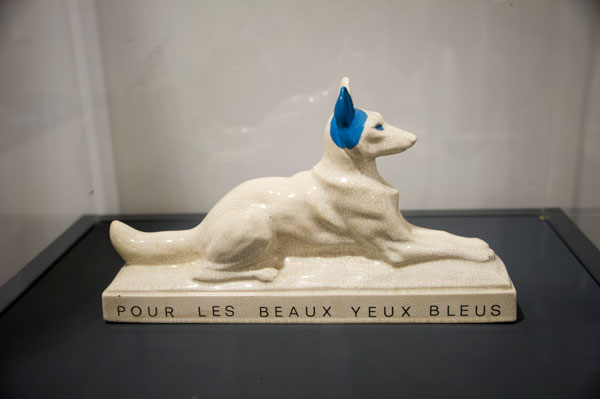 An Egyptian-shaped dog, very dignified, full of nobility, looking on guard, with a blue painted ear. Performed for Aimé Maeght 70th birthday, the work is called “For Aimé’s beautiful blue eyes”. Monory has tried to ceramics but didn’t felt comfortable with it.