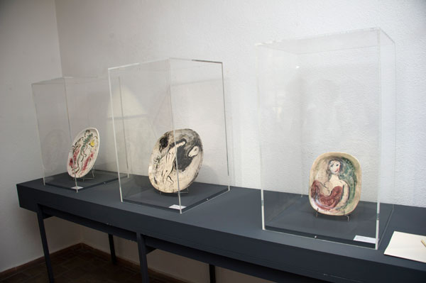 The artist made his ceramic work in Vallauris in the 50s in the Madura workshop, cohabiting there with Picasso. In ceramics, Chagall is in the “immediacy”; the plates presented show different treatments by the artist.