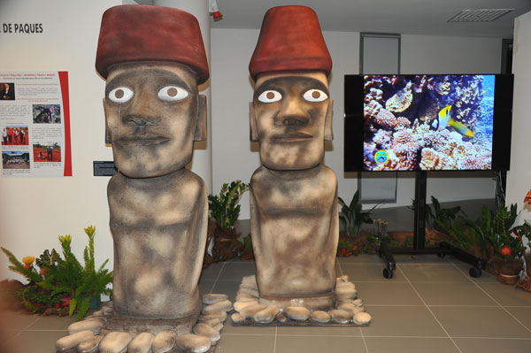 A nice invitation to a great journey were the photos relating the oceanographic campaigns of Prince Albert 1st of Monaco or the exhibition of pictures and two giant wooden colorful statues brought back by Jacques Cousteau during his trip to Easter Island, when the Calypso was calling there 30 years ago in Hanga Roa, a tiny town which is still today the only urban centre on the island.