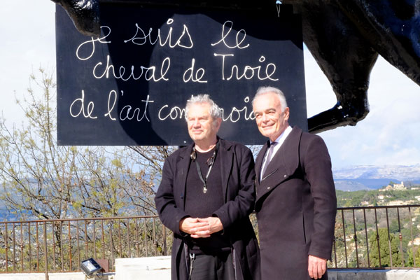 With their colors, materials and imposing and original shapes, the sculptures will spark exchanges and comments for a few months. A new way to admire the art, not in an enclosed space, but in an infinite space where heaven and earth combine into a vast playground. The exhibition was inaugurated by mayor of Mougins Richard Galy in presence of the artists.