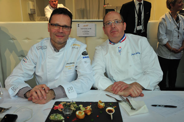 The Neptune d’Or contest was reserved for women and men professional chefs. The participants shared their talents in the afternoon of January 31, 2016 on the theme of seafood. The 6 selected candidates were accompanied by their apprentice chef or their commis (age limit 22 years maximum). They had to realize – in 3 hours maximum – a recipe of their choice, developed from the imposed products: Turbo, Lobster, Horse Foot (a variety of flat oyster). Standing on a silver platter the culinary achievement called Neptune d’Or received the appreciations of the jury after tasting.