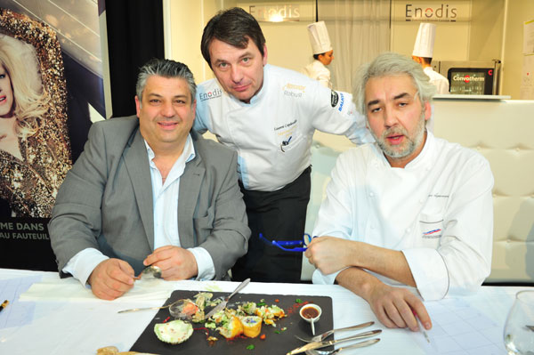 Under the presidency of Michel Roth (MOF and Bocuse d’Or, Director of the Hotel President Wilson‘s kitchens in Geneva) and Guillaume Gomez (MOF), the event was hosted by Carinne Teyssandier, famous reporter in Télé Matin broadcast aired on France 2. The fine cook TV star offers tasty recipes live from Rungis. The jury, chaired by Stéphane Coco, winner of the 2014 edition, was composed of 12 members including prestigious chefs and food journalists.