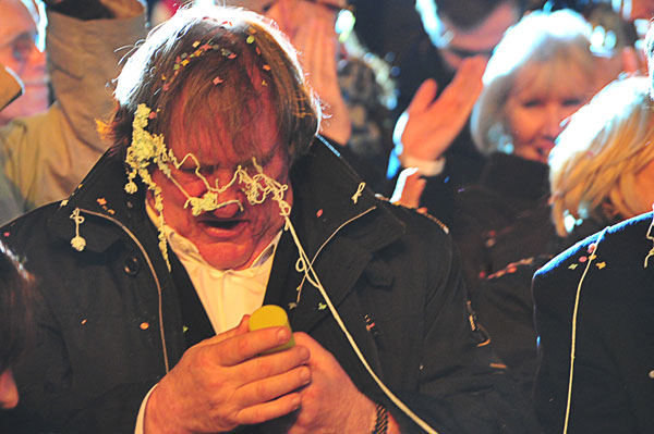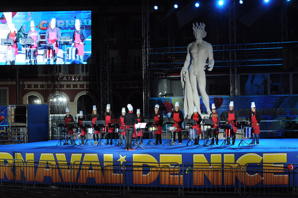 Christian Estrosi, Mayor of Nice, along with famous actor Gérard Depardieu, Deputy mayor Denise Fabre and Angéline, Queen of Carnival 2014, declared opened on Friday February 14, 2014 the 130th edition of the third Carnival in the world whose gourmand and festive reign will last 19 days. Nice Carnival inauguration ceremony had began at 20 h 30 on a Place Masséna packed with 1,500 schoolchildren wearing chef toques and donning attires of “marmitons” (kitchen boys): pots and pans and forks, spoons and graters.
