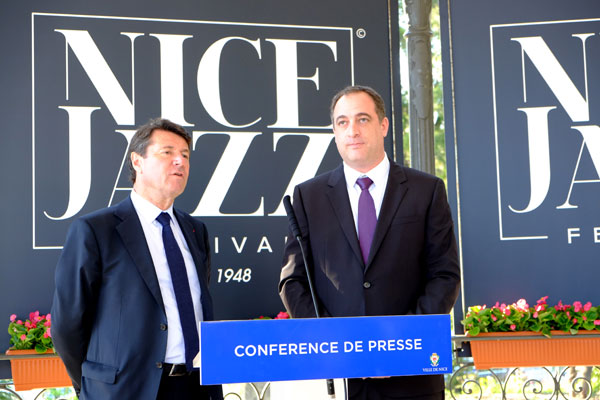 Christian Estrosi, MP-Mayor of Nice, President of the Nice Côte d’Azur Metropolis, and Sebastien Vidal, Artistic Director of the Nice Jazz Festival 2015, presented the program of the 5th edition of the Festival at the Jardins Albert 1er music pavilion.