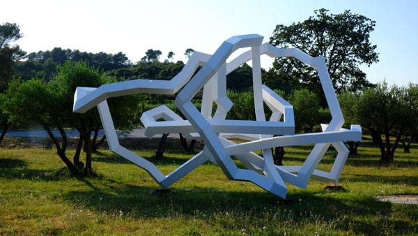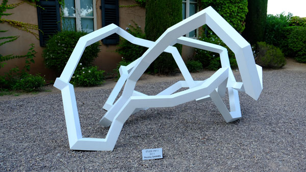 Besides its exceptional Cru Classé wines, Chateau Sainte Roseline offers each year artistic events of international quality. For its fifteenth summer exhibition, Aurélie Bertin, owner of Sainte Roseline, presents Sanhes Nicolas‘ monumental metal sculptures, featuring lines born from his concept of “incident geometry”.
