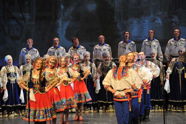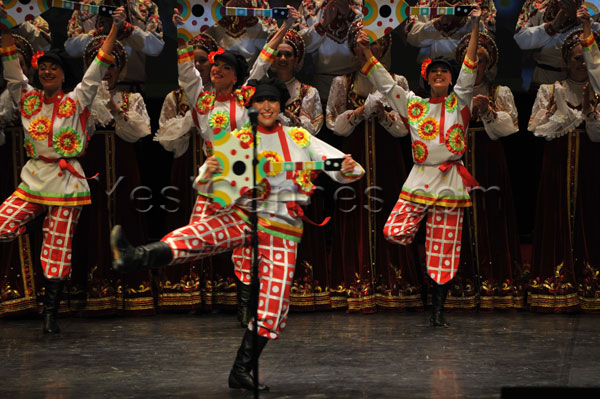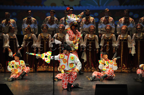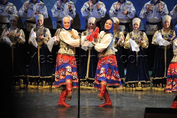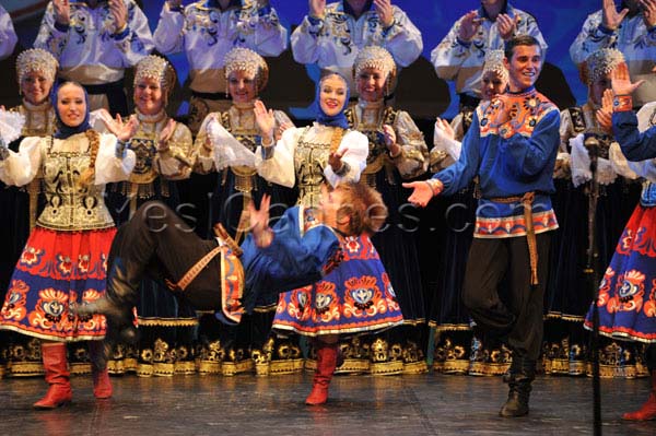 At the sound of the balalaikas, it was all of the Russian soul who paraded before our dazzled eyes. How not to be fascinated by the dancers who twirl, whirl, by their crystalline voices in the silence of the amphitheater, by their grace and beauty of their movements, the performance of dancers leaping heights with unimaginable ease and thoroughness, combining acrobatic fancy the “Cossack” way and this typically Russian attraction for the purity of the line of the corps de ballet.