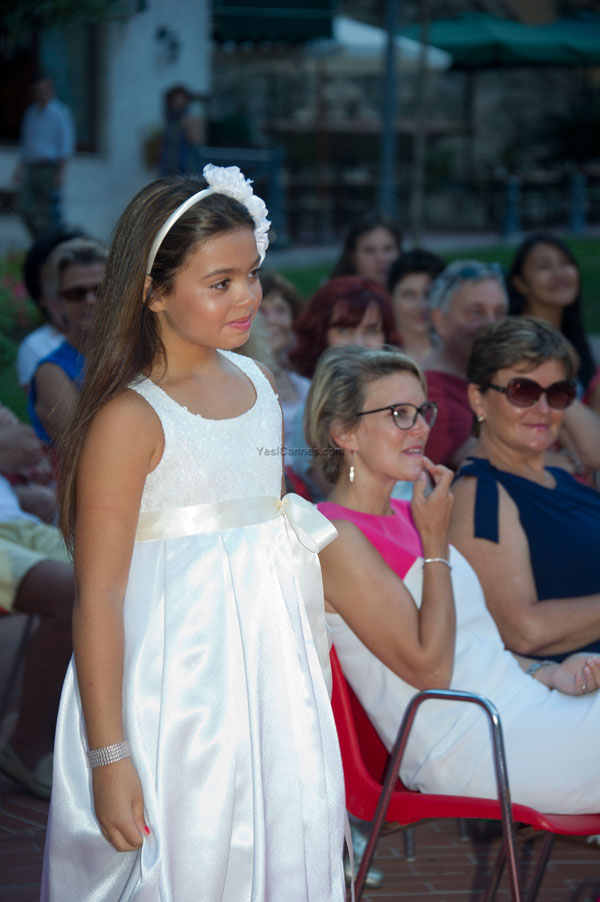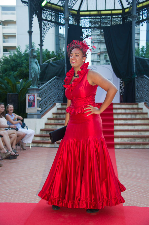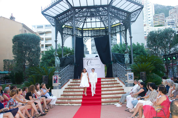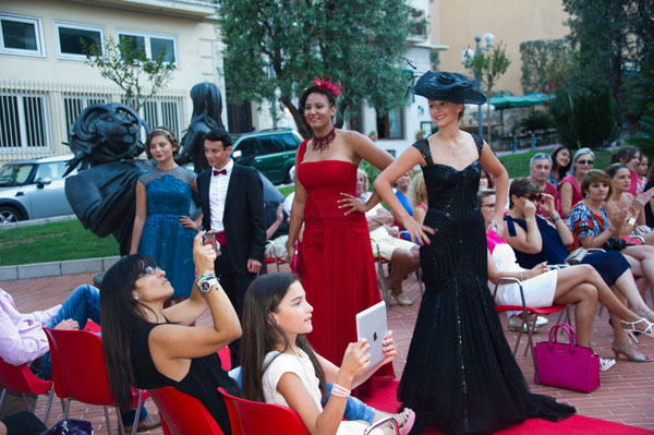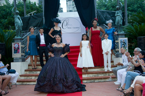 Who better than the customers of Organza de Monaco to showcase the boutique evening and cocktail dresses creations? On August 14, 2014, the Square Gastaud in Monaco, with its kiosque à musique, provided the catwalk setting for this elegant and unusual fashion show, where one-day models paraded before a large audience, in the pleasant atmosphere of a summer evening.