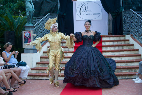 One-day models, customers of boutique Organza de Monaco showed off evening and cocktail dresses during a parade at Square Gastaud.