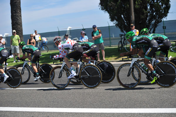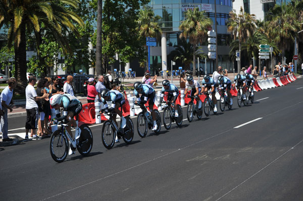 A very tight result for the team time trial in Nice Tour de France stage, which saw the team of flat racers Orica-Greenedge win the stage for one second. The favorites played well their stage and fulfilled their mission for the day.