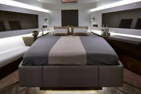 Powered by either triple Cummins Zeus 600 HP, Twin Volvo IPS 800 HP engines or twin Volvo D13 shaft drive, the yacht will have a fuel capacity of 770 Gallons (3,500 litres), reach a top speed of 32 knots and have a cruising range of 350 nautical miles.