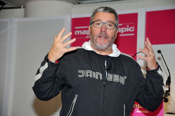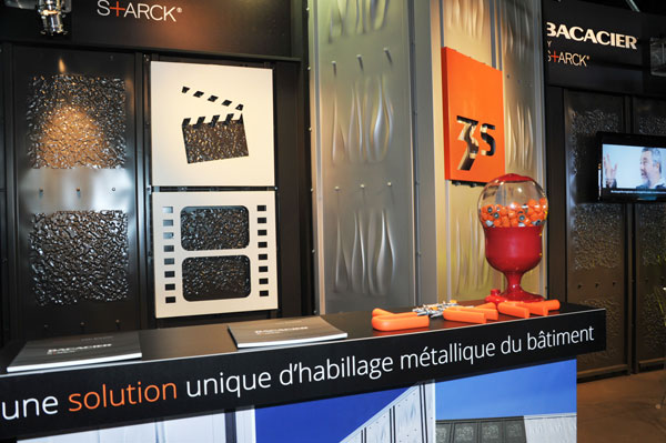 World-famous French creator and designer Philippe Starck came to MAPIC 2013 to present his new baby “Bacacier by Starck”, an exterior luxury facade covering concept to be be used for future malls, co-developped with Bacacier, a French group specializing in metal sheets for buildings.