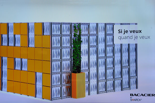 Philippe Stark explained during the presentation that the new siding that he had developed with the company Bacacier is a giant, enormous and endless meccano-set which varies imprints, landforms, materials, colors: “We made a meccano-kit that will be an amazing tool for all architects, a major development for the architecture and construction.”