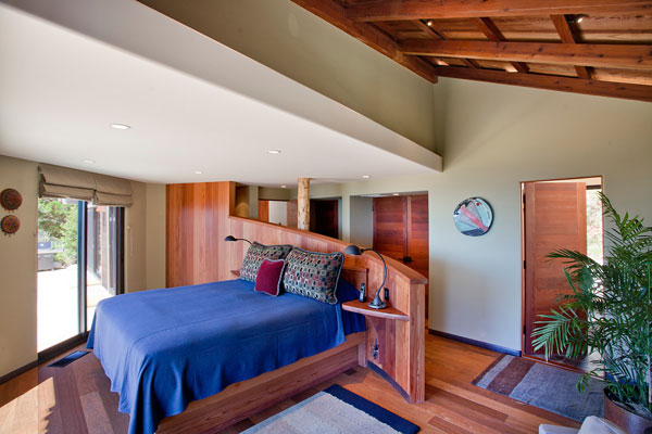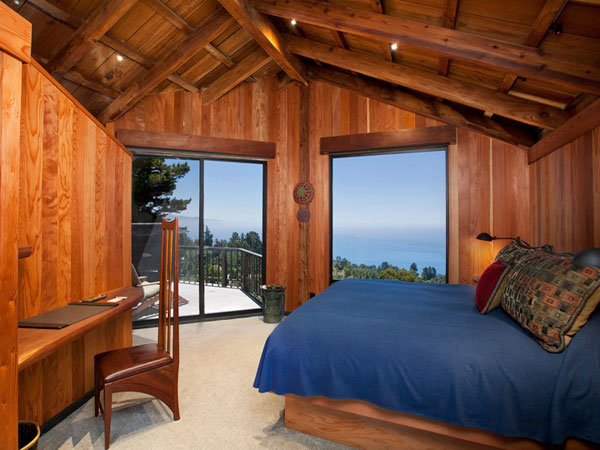The Peak Houses offer breathtaking views of the Santa Lucia Range. Guests enter through an enclosed courtyard to the secluded bedroom with custom-built furniture and a hot tub on the private terrace.