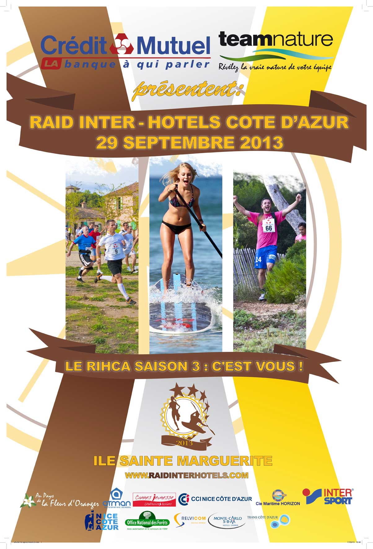 Following the success of the two previous editions, the Team Nature agency extended the Raid Inter Hotels Côte d’Azur (RIHCA). Unique in France, this meeting is open to all staff among 1 to 5-star establishments, will bring together on Sunday, September 29, 2013 nearly 400 people on the Sainte -Marguerite island, off the bay of Cannes. Attracted by this initiative offering strong human values, local branches of Mediterranean Crédit Mutuel, involved in supporting the local community, have renewed their parnership for the second consecutive year.