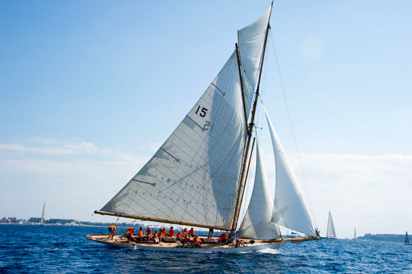 The biggest boat sailing at the Regates Royales de Cannes-Trophee Panera was Elena of London, a 60-meter long Spirit of Tradition schooner. Sumptuous beauties delighted the public, including the 33-meter long schooner Altair (1931) and the gaff cutters Moonbeam IV (1914) and Moonbeam of Fife (1903) built by the Scottish shipyard William Fife, birthplace in 1936 of Eilean, the 22-meter ketch ambassador of Officine Panerai in gatherings of classic yachts.