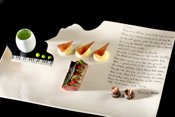 Moreover, the dishes are illustrated on the menus with poetic evocations of the ingredients used to take the gourmets to epic proportions of gourmandise and poetry.