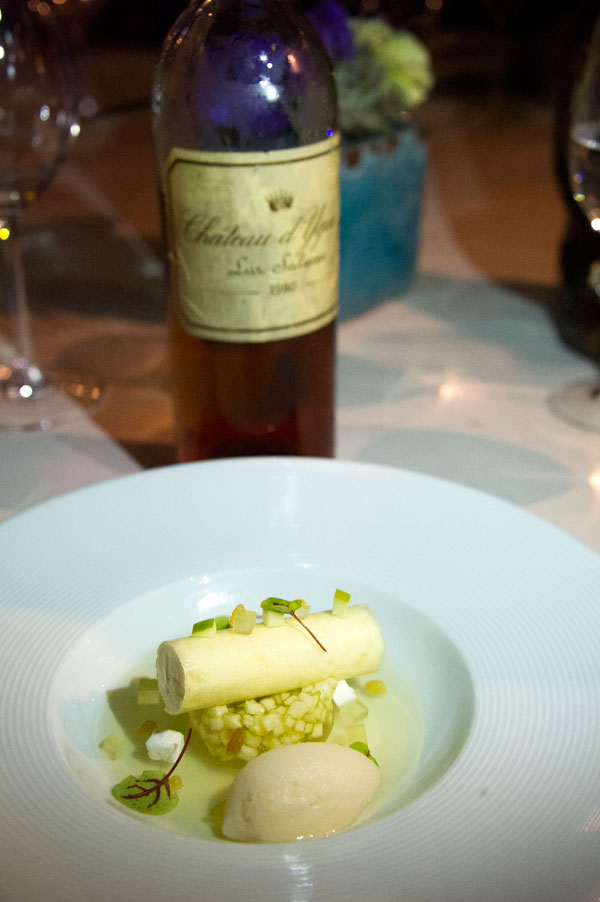 The elegance of the dessert was enhanced by a “nectar of the Gods”, one of best wines in the world, Château d’Yquem 1980, Sauternes, Bordeaux, concluding in apotheosis this food and wine pairing.