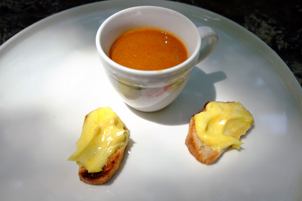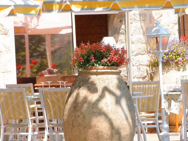 The Restaurant & Chambres d’Hôtes Le Castellaras is a large Provencal bastide overlooking the valley of Fayence in an idyllic countryside setting. Its large terrace is sheltered from the heat of the southern sun by large trees, including a huge plane tree, and cooled off by a large Asian-inspired basin where large (and greedy) colorful Koi carp frolic. The chef Quentin Joplet, who succeeded Alain Carro, is cooking local seasonal products, a “cuisine du marché” with great respect for the environment. To eat in peace, the terrace is surrounded by a Bio Belt against mosquitoes.
