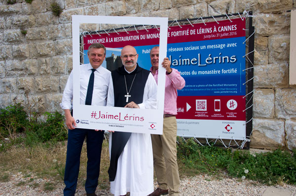 In the presence of David Lisnard, Mayor of Cannes, the signature of the campaign #JaimeLérins took place on June 29 at the Fortified Monastery, between Dom Vladimir Gaudrat Abbot of Saint Honorat, François-Xavier Bieuville, CEO of the Heritage Foundation and François-Tribot Laspierre, from the Total Foundation.