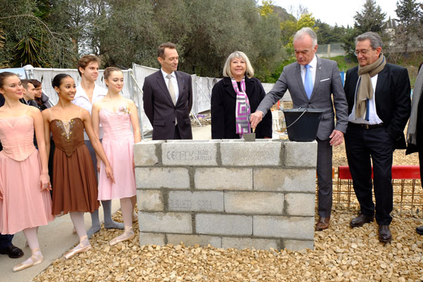 The ceremony to lay the foundation stone of the work of restructuring and expansion of ESDCM Rosella Hightower was held on February 13, 2015, in the presence of Richard Galy, Mayor of Mougins and Paola Cantalupo, Artistic and Educational Director of the ESDCM as well as representatives of its partners: the State, the Region, the General Council and the City of Cannes.