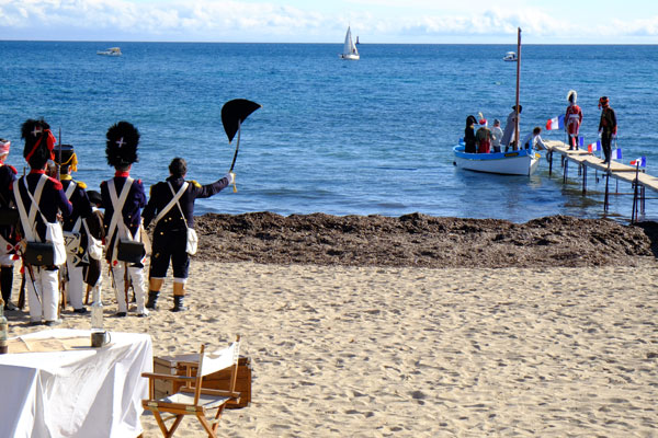 Napoleon in exile on Elba, judging Louis XIII unable to govern, decided to regain power. With a handful of followers, he landed on March 1, 1815, on the beach of Golfe-Juan in the early morning with General Cambronne who commands the vanguard and goes ahead to check the path. He was ordered not to fire a shot. Some 150 extras, dressed as Empire grognards, participated in the reconstitution in Golfe-Juan – which takes place every year.