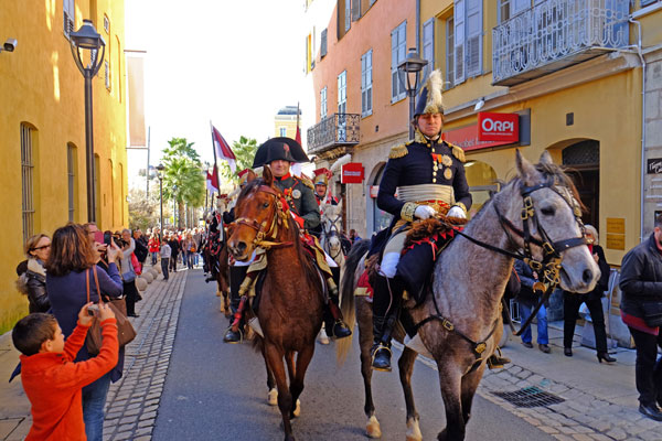 Napoleon stopped at Cannes for the night around a bonfire on the beach at the site of the Palais des Festivals. The Bivouac Napoleon reconstitution was held near the Church of Notre Dame, where a bas-relief commemorates the passage of the Emperor.