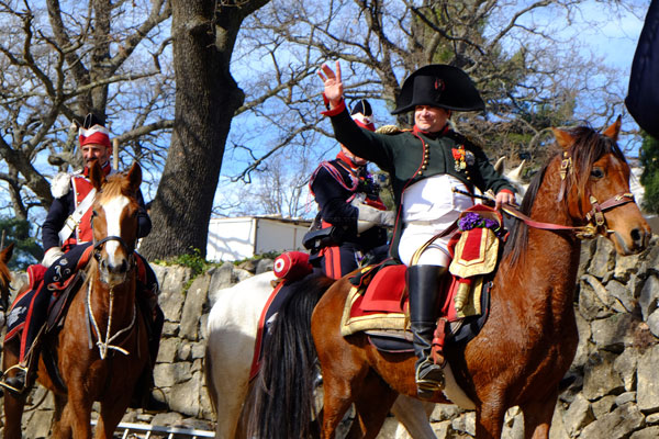To celebrate this bicentenary, the events have multiplied in the cities crossed by the Route Napoleon, in Golfe Juan, Cannes, Grasse, Séranon, a total of 42 municipalities. All along the route, the reconstitution of historical scenes have revived the popular fervor aroused by Napoleon 200 years ago.
