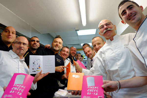 Made by many hands by over 85 Chefs of the chain of etablishments headed by renowned chef Alain Ducasse, the Dîners de Chefs have been a great success, both on the gastronomic field as charitable, as all revenue generated by the talent of big-hearted chefs allowed to donate € 110,744 to the association founded by Coluche.