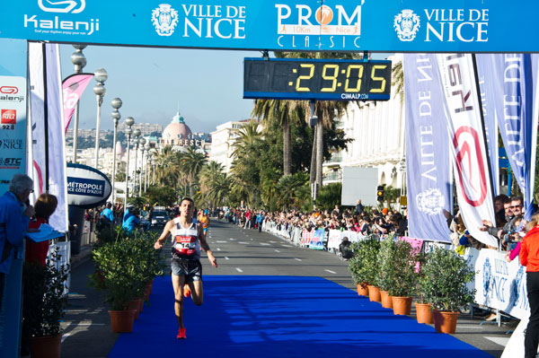 The event became tactical and the podium was taking shape at the 7th km. Indeed, Abdellatif Meftah accelerated the pace leaving Hassan Chahdi alone. In the very last meters, Mounir Acherki came back on the race leader. The French Abdellatif Meftah improves his last year’s time (already winner of the 2014 Prom’Classic in 29’20”) and goes on the top step of the podium in 29’01” followed by Hassan Chahdi 29’07” and Mounir Acherki which closes up the podium in 29’10”.