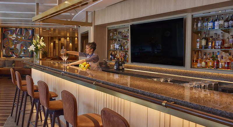 The residents come from over 20 different nationalities, and most use their property on board for a few months each year, although some live there full-time. This private community at sea is the ultimate combination of a luxurious and enriching journey with world-class amenities and facilities. Epicurean pleasures flourish in a selection of gourmet restaurants offering cuisines from around the world, adjacent to four wine cellars containing the most prized nectars in the world. During their journey, the residents welcome winemakers for tastings of local wines – and to complete the wine cellars with signed bottles – chefs for the discovery of the country’s specialties, and local producers. In Cannes, the ship recently welcomed some members of the Ordre Illustre des Chevaliers de Méduse, whose vocation is to promote wines from Provence.
