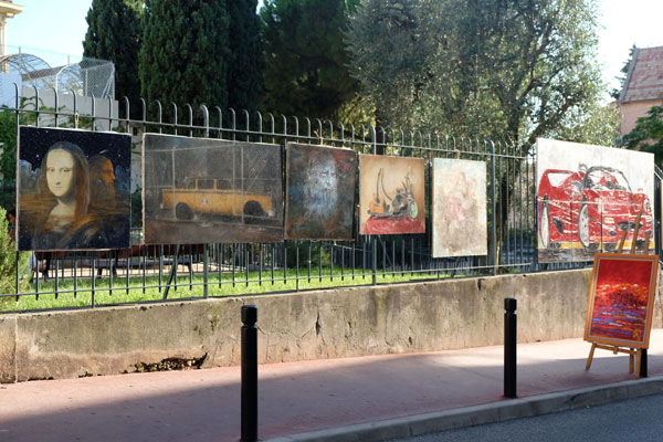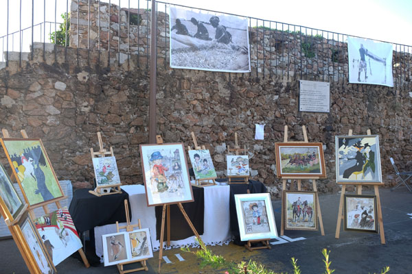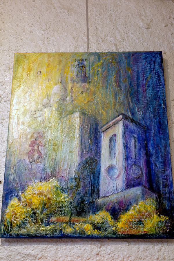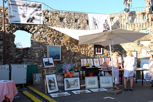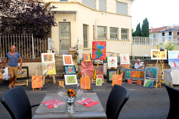 Across the rue du Pré, the Suquet des Arts visitors could admire, along a row of stalls, some colorful paintings mounted on easels, decorative paintings and clay sculptures.