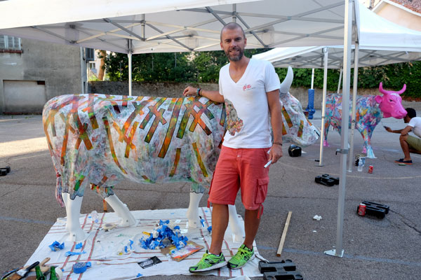 In the courtyard of the Residence des Artistes, the visitors could watch a beautiful cultural “live” experience with artists Gregory Berben and David David who painted in public two cows in resin. This performance was a preamble to the future first Cow Parade traveling in France – Transhumance – which will come in Cannes from October 1 to November 15, 2015, in partnership with the cities of Paris and Deauville.
