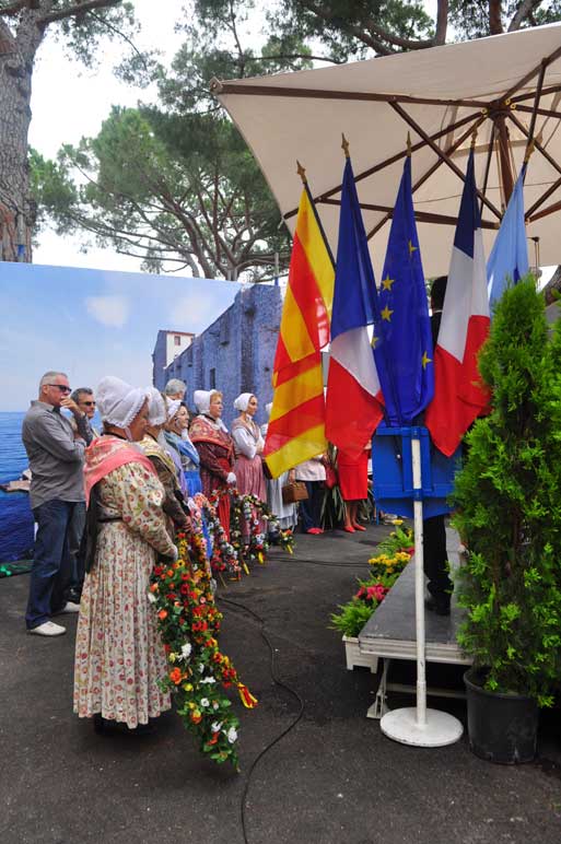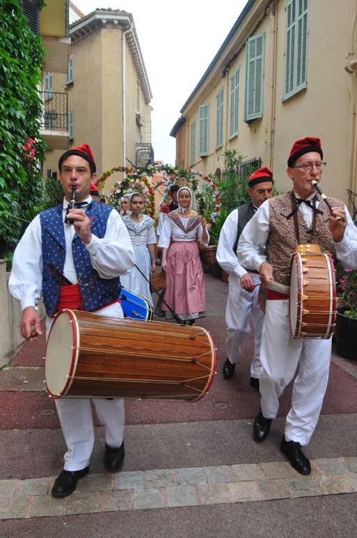 On the Place de la Castre, in the shelter of ramparts, between sea and sun, the Provencal Academy marching from the St. Antoine foot of the Suquet hill through the village, made its joyful entry, animating this beautiful event with the sound of bagpipes and tambourines.