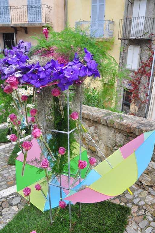 For the occasion, the historic center of Cannes has bloomed on June 8 and 9, along its shady streets and its cobbled squares, with lavish floral decorations on the theme of cinema. The 7th Art ephemeral garden lazily sprawled along the streets of the village, nestling in every corner stone, up to the forecourt of the church Notre Dame de Bonne Espérance (Our Lady of Good Hope) where a bed of red carnations was spreading. Finally, the flowers path ended at place de la Caste. Opportunities for tourists to discover with delight these little-known places; armed with their camera, they were endlessly photographing these artistic prowesses with cries of delight in front of so much beauty and delicacy.
