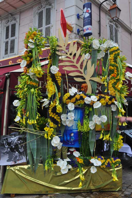 The Cannes Film Festival just closed, back he comes in the form of artistic floral decoration at the Suquet Fleuri. A beautiful shop-window in the old city that many visitors still under the aura of the city star event, came to admire.