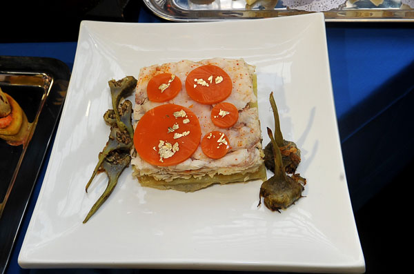 The first competition of the day, the 5th edition of the Trophée National de Cuisine Francis Trocelier, was intended for early risers since it started at 7:30 in the morning. The competition was organized by the Delegation of the Catalan and Occitan countries of Disciples d’Escoffier International, an association for the transmission of cooking knowledge and its modernity. It was intended for professional chefs over 21 years. The competition invited the candidates to achieve in 3 hours an innovative and unprecedented recipe of Gigot de Mer with an accompaniement that should be inspired by Auguste Escoffier’s Culinary Guide.