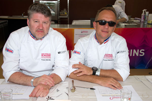 The dishes of the candidates were assessed by a jury representing 11 Michelin stars. Chaired by Michel Roth (Le Bayview* – Geneva), the jury included: Pierre-Yves Fouqué (Club des Directeurs de Restauration), Nicolas de Cherchi (Le Paloma** – Mougins), Annie Feolde (Enoteca Pinchiorri*** – Florence), Jean-Luc Rabanel (L’Atelier de Jean-Luc Rabanel** – Arles), Michael Wignall (Gidleigh Park** – Chagford, Devon) and David Chauvac (Le Mas Candille* – Mougins).