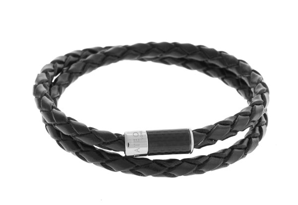A must for men looking to add a touch of the industrial to their wristwear style: the masculine Carbon Fibre bracelet is combining strong chunky braided Italian leather in black with a sleek highly polished carbon fibre pop clasp.