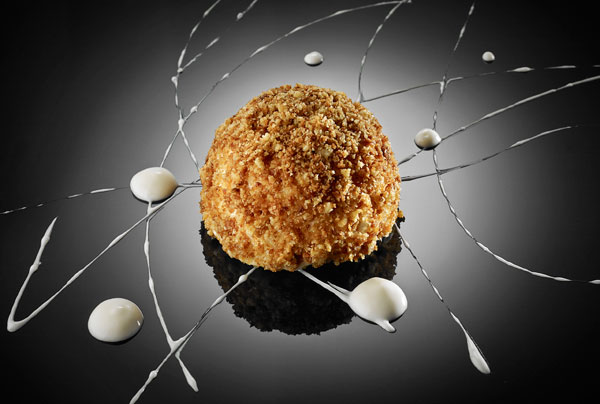 Le Mystère de l’œuf, en neige, big crispy breadcrumbs brioche, Reggiano parmesan cream.